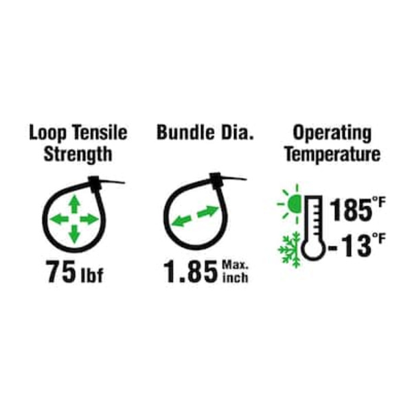 Commercial Electric 8in Mountable 75lb Tensile Strength Ul 21 Rated Cable Zip Ties 10 Pack Natural (white)