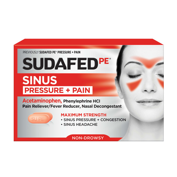 Sudafed PE Sinus Pressure + Pain Relief Decongestant Tablets, 24 ct