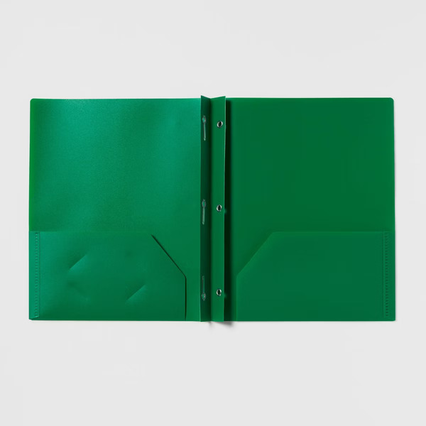 2 Pocket Plastic Folder with Prongs Green - up & up™