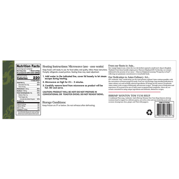 Front of Prepared Soups & Salads Authentic Asia Shrimp Wonton Tom Yum Soup, 6 x 5.19 oz