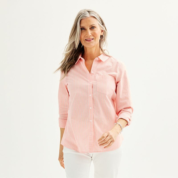 Women's Croft & Barrow® Essential One Pocket Button Down Shirt, Size: Small, Med Pink