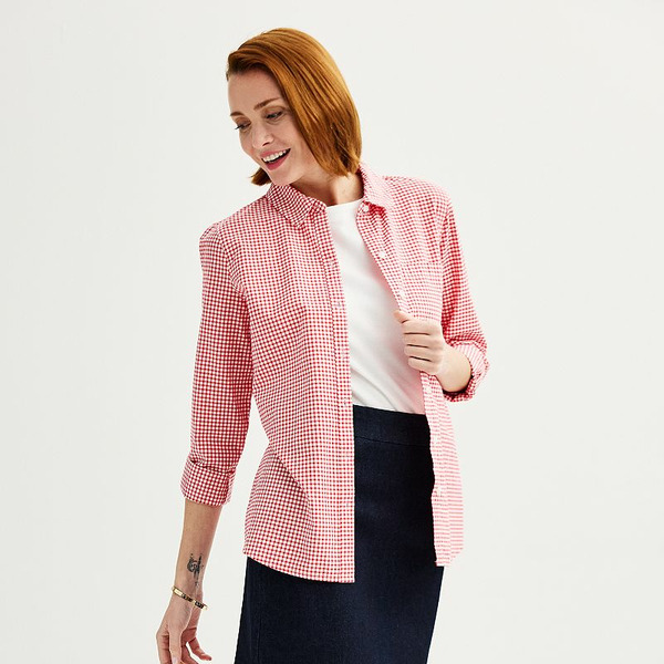 Croft & Barrow Women's Croft & Barrow® Essential One Pocket Button Down Shirt, Size: Small, Med Red