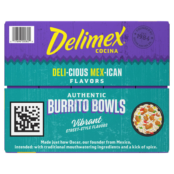 Front of Frozen Meals Delimex Cocina Burrito Bowl, Chicken Poblano Queso, 10 oz, 5-count