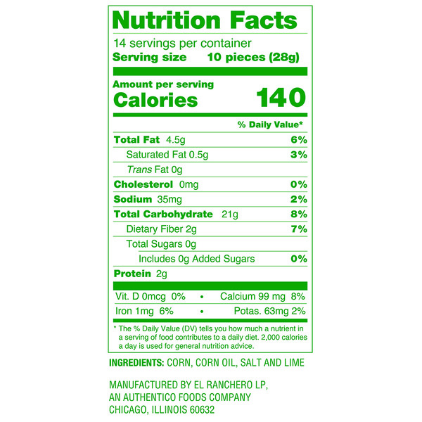 Front of Chips & Pretzels El Ranchero Salted Tortilla Chips