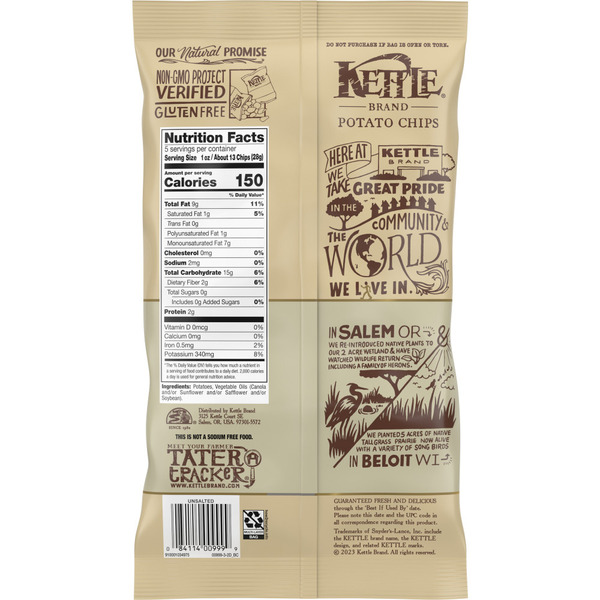 Front of Chips & Pretzels Kettle Brand Unsalted Potato Chips