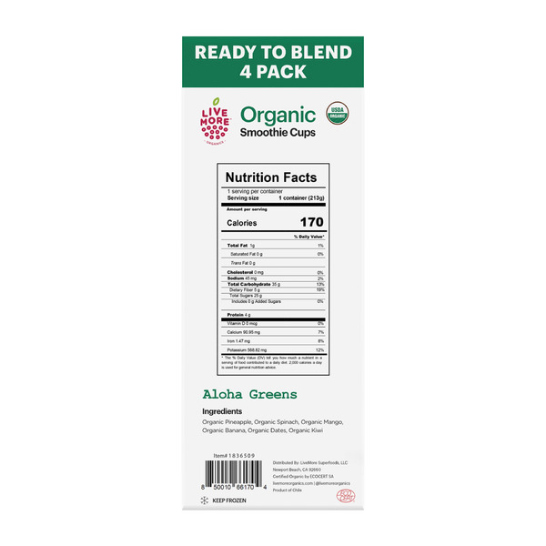 Live More Organics Aloha Greens Smoothie Cups, 7.5 oz, 4-count