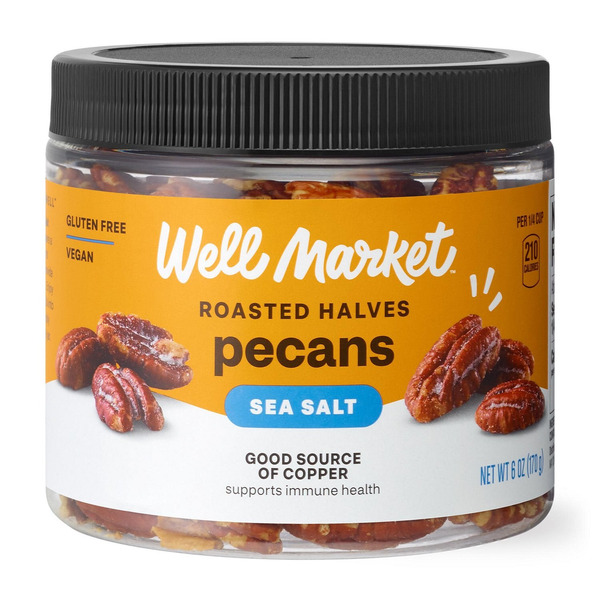 Front of Nuts, Seeds & Dried Fruit WELL MARKET Sea Salt Roasted Pecans