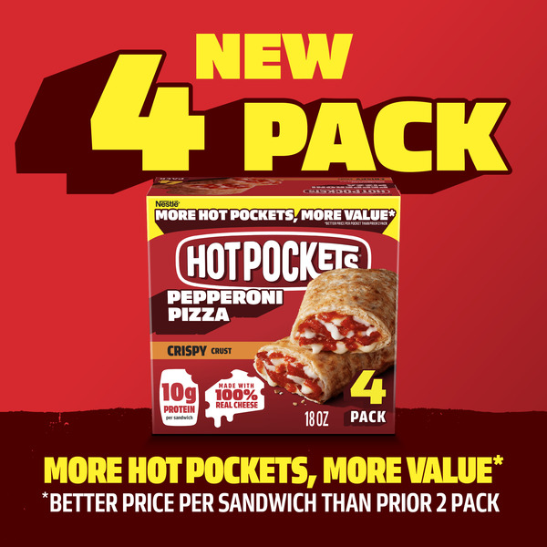 Front of Hot Pockets Hot Pockets Pepperoni Pizza Crispy Crust Frozen Sandwiches Frozen Snacks 4PK