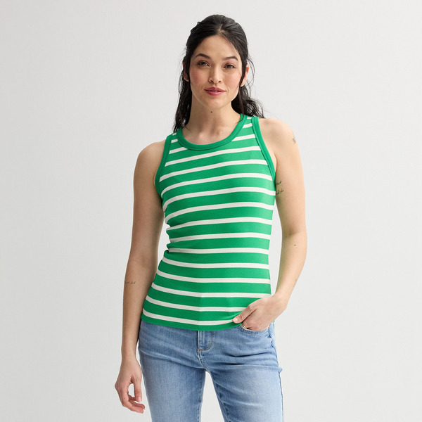 Front of Women's Sonoma Goods For Life® High Neck Layering Tank Top, Size: XL, Ivory Green Stripe