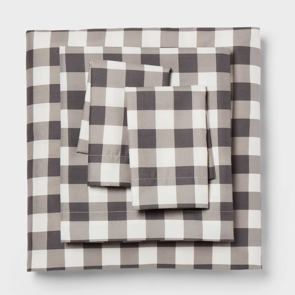 Room Essentials Microfiber Sheet Set, Twin/Twin XL - Gray Plaid