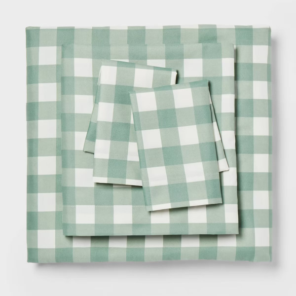Room Essentials Microfiber Sheet Set, King - Green Plaid