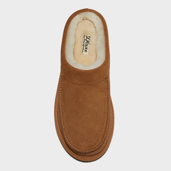 Dearfoams Men's Lith Moc Toe Medium Width Clog Slippers, Size 13 - Light Brown