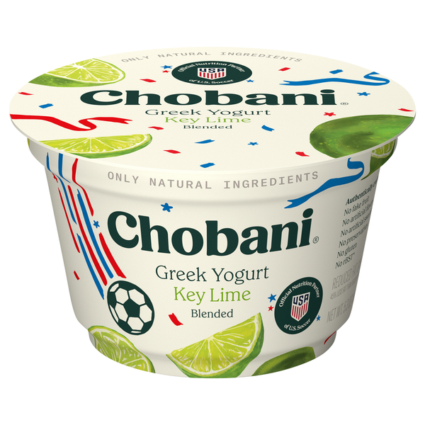 Front of Yogurt Chobani Reduced Fat Greek Key Lime Blended Yogurt
