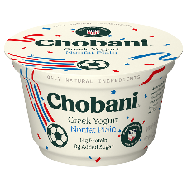 Front of Yogurt Chobani Nonfat Greek Plain Yogurt