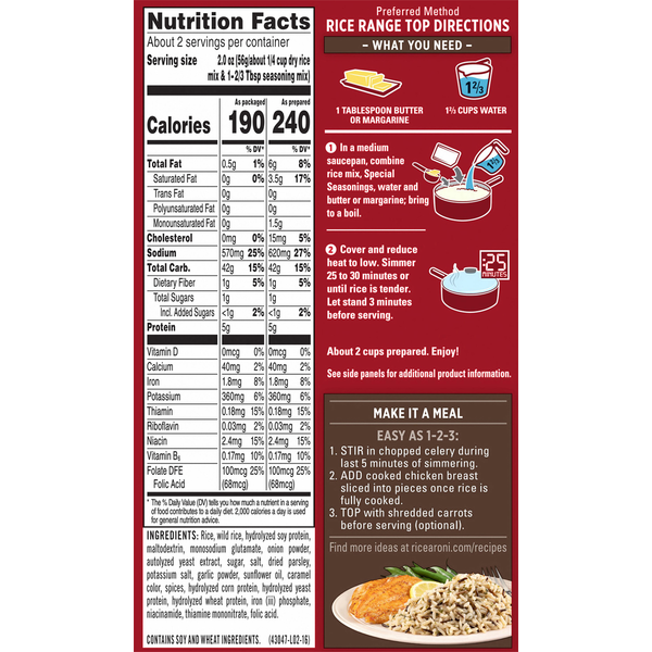 Front of Instant Foods Rice-A-Roni Rice-A-Roni® Long Grain & Wild Rice