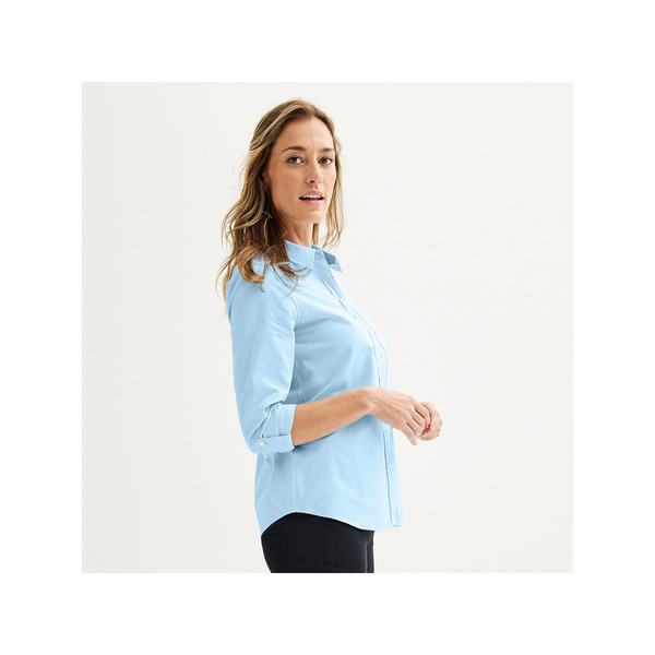 Women's Croft & Barrow® Essential One Pocket Button Down Shirt, Size: Small, Secret Peri