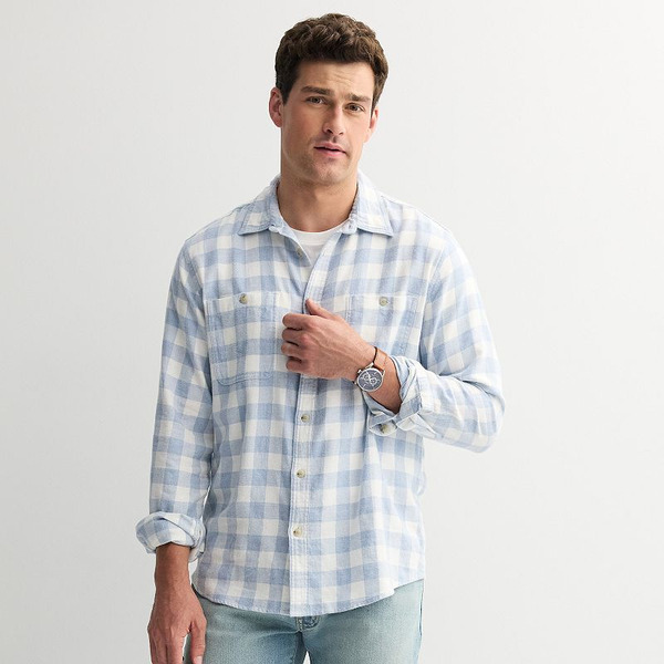 Sonoma Goods For Life® Long Sleeve Brushed Flannel Shirt, Men's, Size: Small, Blue Grey Med Buff