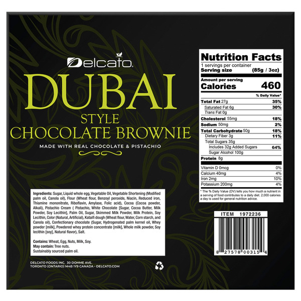 Delcato Dubai Style Chocolate Brownie, 3 oz, 10-count