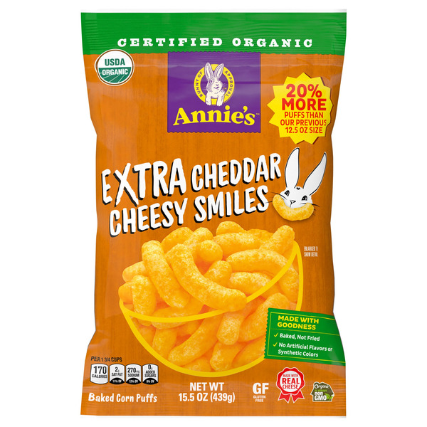 Annie's Organic Extra Cheddar Cheesy Smiles Corn Puffs, 15.5 oz