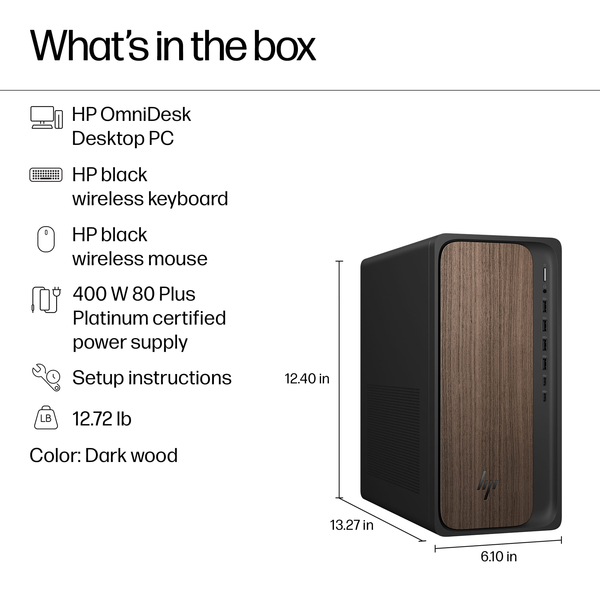 Front of HP Omni Intel Core Ultra 7 32GB Memory NVIDIA GeForce RTX 5060 1TB SSD Desk Desktop - Dark Wood