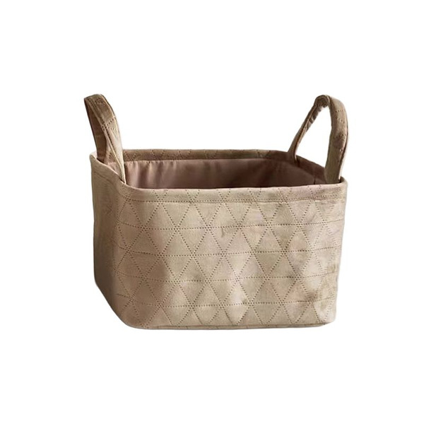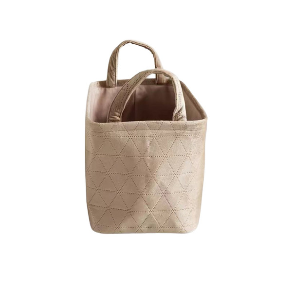 Front of Neatly Quilted Velvet Fabric Basket, Brown