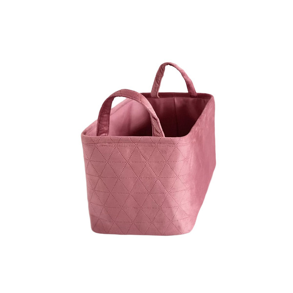 Front of Neatly Quilted Velvet Fabric Basket, Pink