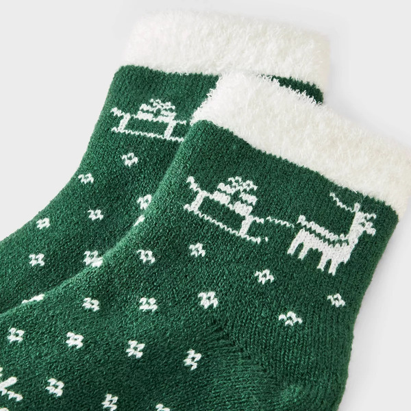Auden Women's Reindeer Fair Isle Christmas Double Lined Cozy Ankle Socks, Size 4-10 - Green