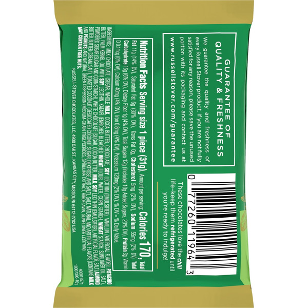 Russell Stover Dubai Style Pistachio & Kataifi in Milk Chocolate Candy Bar, 1.1 oz.