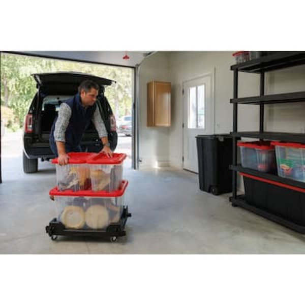 HDX 17 Gal. Tough Storage Tote In Clear With Red Lid