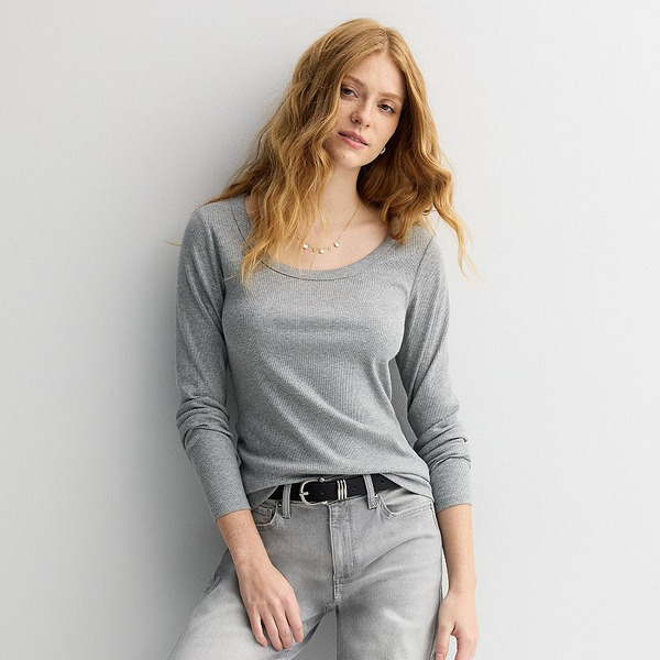 Women's Sonoma Goods For Life® Rib Long Sleeve Scoop Neck Tee, Size: Large, Dovetail Grey