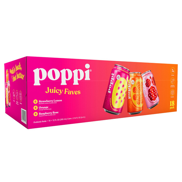 poppi Prebiotic Soda, Variety Pack, 12 fl oz, 18 ct