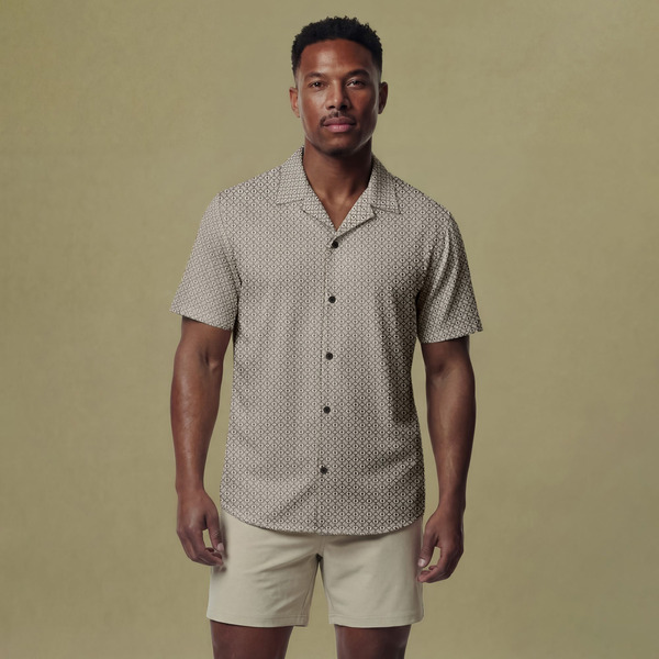 VRST Men's Performance Resort Shirt, XL - Khaki Mod Geo