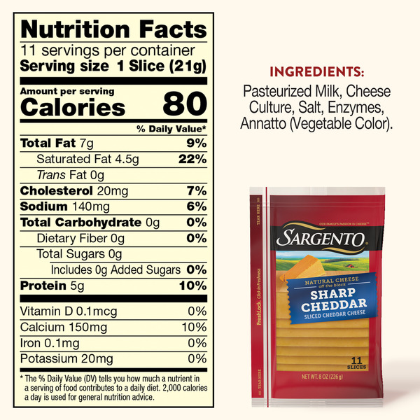 Sargento Natural Sharp Cheddar Sliced Cheese, 11 Slices