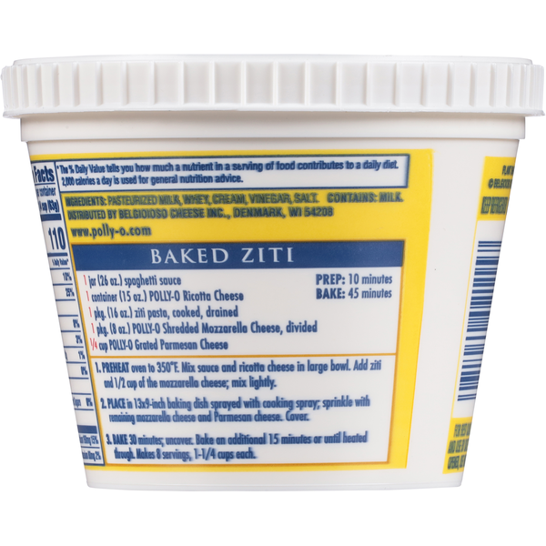 Front of Packaged Cheese Polly-O Ricotta Cheese, Original