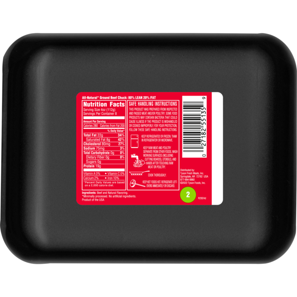 Front of Packaged Meat Ibp Trusted Excellence GROUND CHUCK 80% (2.0 NET WT)