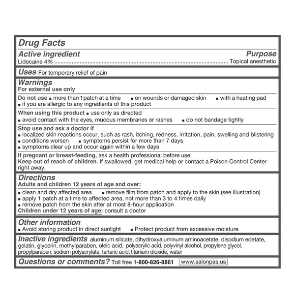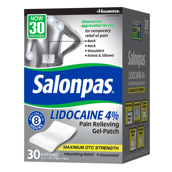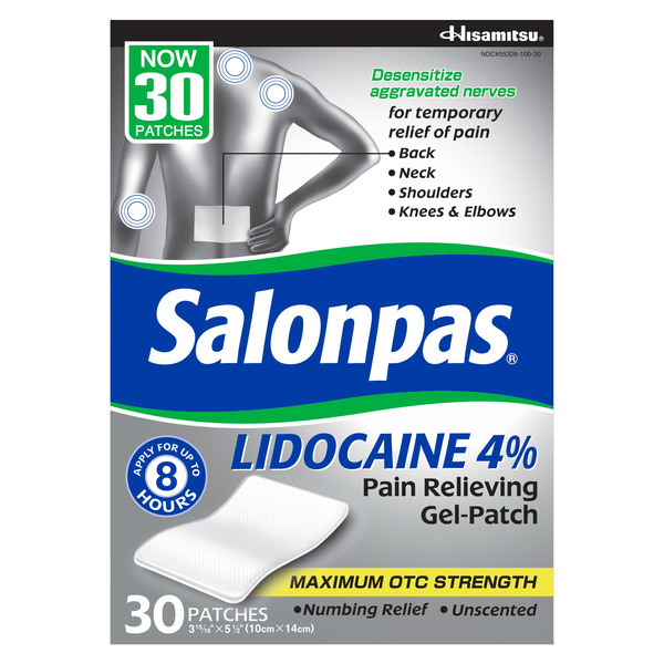 Salonpas LIDOCAINE 4% Pain Relieving Gel-Patch, 30 Patches