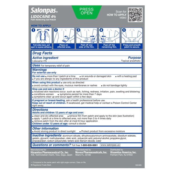 Front of Muscles, Joints & Pain Relief Salonpas Lidocaine 4% Pain Relieving Gel-Patch