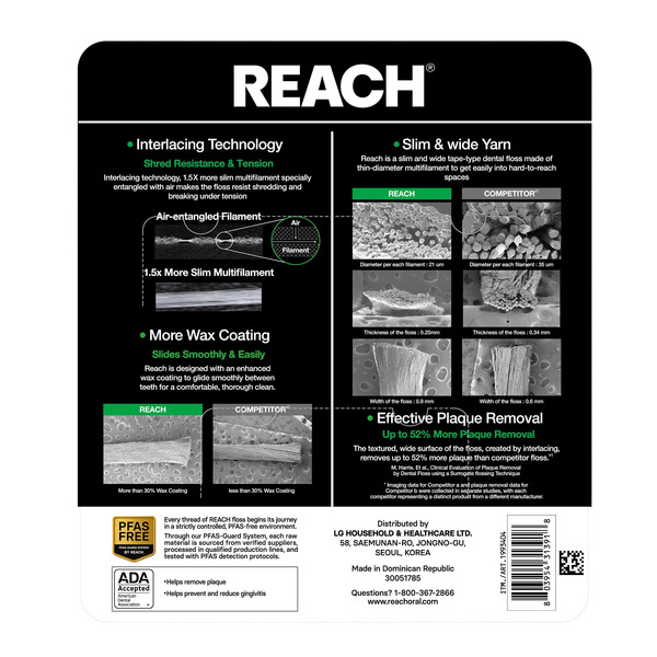 Front of Oral Hygiene REACH Mint Waxed Dental Floss