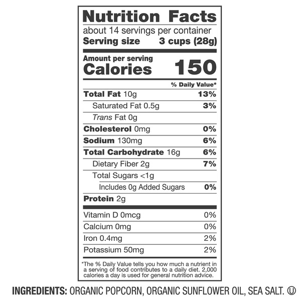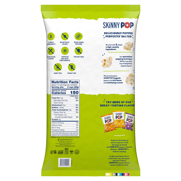 Front of Popcorn SkinnyPop Organic Original Popcorn