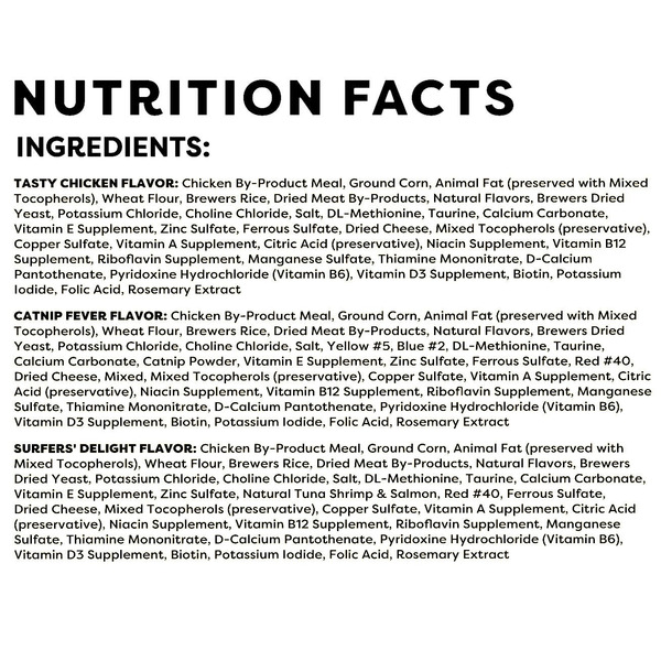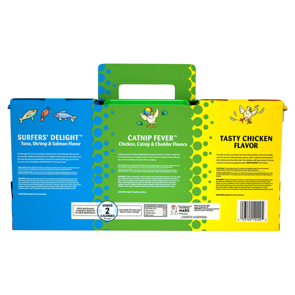 Front of Cat Food & Care TEMPTATIONS Cat Treats, Chicken, Catnip & Seafood, 16 oz, 3-pack