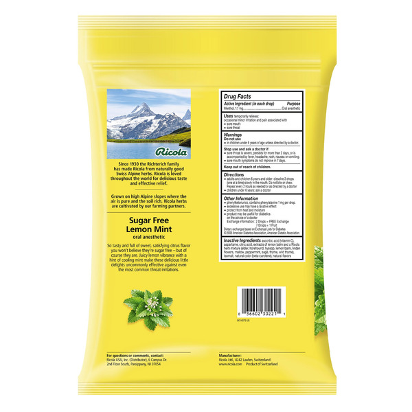 Front of Over the Counter Pharmacy Ricola Ricola Sugar Free Lemon Mint Cough Drops, 210 Drops