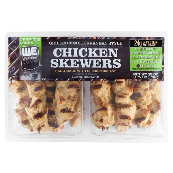 WestEnd Cuisine Grilled Chicken Skewers, Mediterranean Style, 2 oz, 14-count