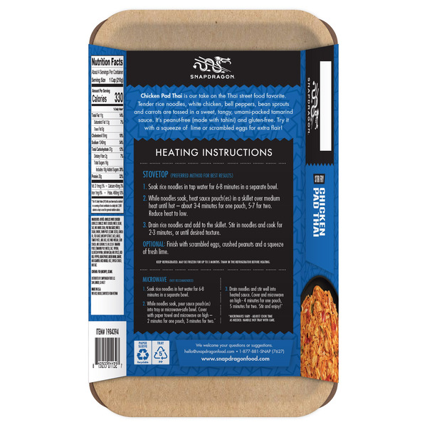 Front of Prepared Meals Snapdragon Chicken Pad Thai