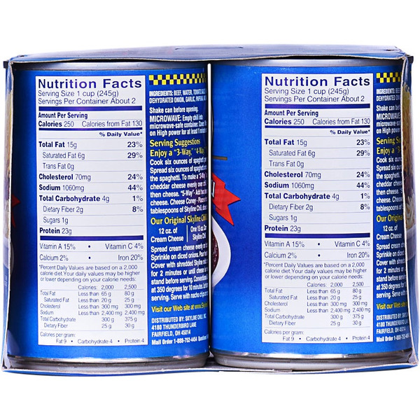 Front of Canned Meals Skyline Original Chili, 4 X 15 Oz