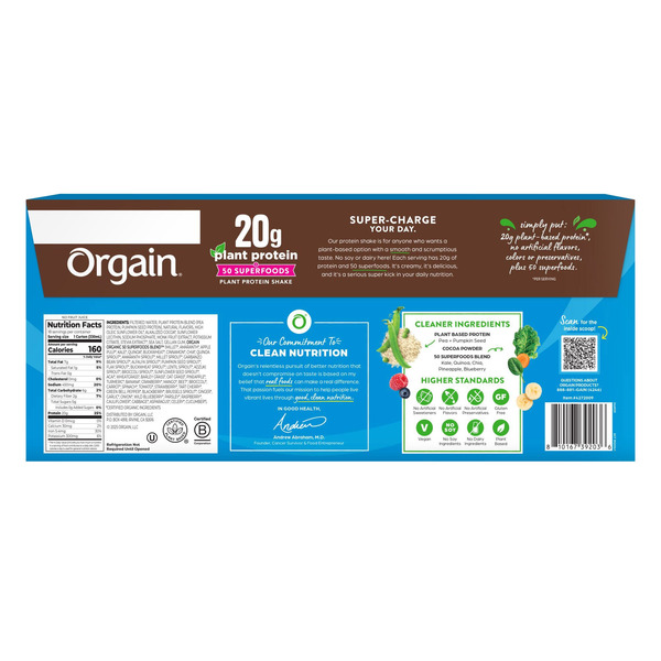 Front of Protein & Meal Replacements Orgain Plant Protein Shake Chocolate, 18 x 11 fl oz