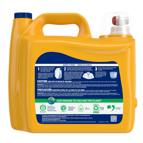Front of Laundry Arm & Hammer Plus Oxiclean Max He, 200 loads, 200 fl oz
