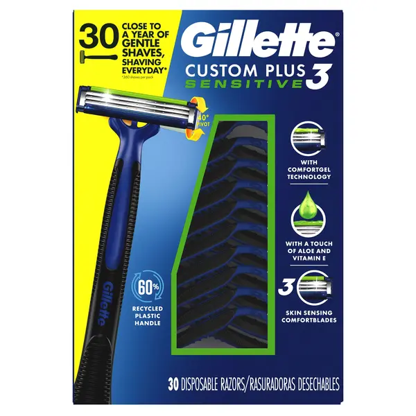 Gillette Custom Plus3 Disposable Razors Sensitive, 30-count