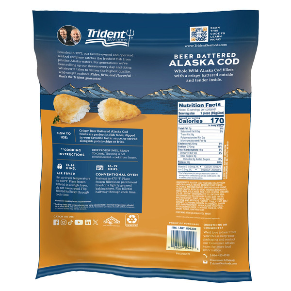Front of Frozen Meat & Seafood Trident Seafoods Beer Battered Wild Alaskan Cod