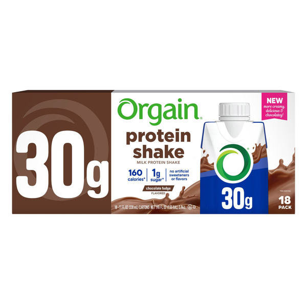 Orgain 30g Milk Protein Shake, Chocolate Fudge, 11 fl oz, 18-pack