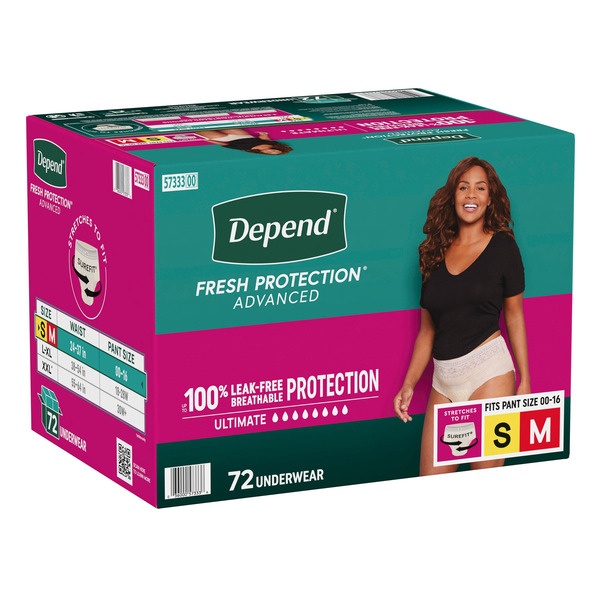 Depend Fresh Protection Advanced for Women, Size S-M, 72-count